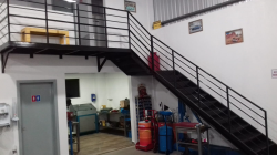 O barracão possui telhado térmico, modelo “sanduíche” de aluzinco e isopor, com paredes de tijolos rebocados. Os banheiros são azulejados, com ótimos acabamentos. Possui, ainda, um escritório com recepção e um mezanino com cozinha e banheiro. Permanecem os móveis fixos.