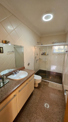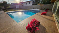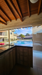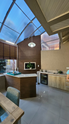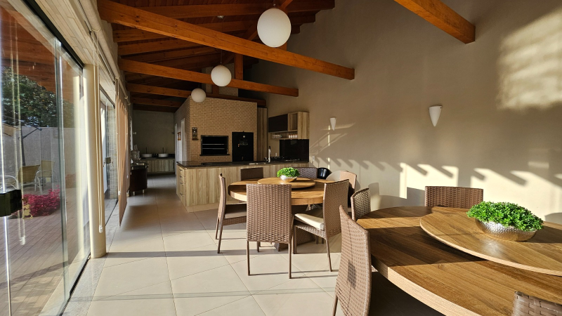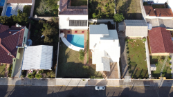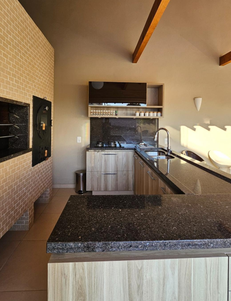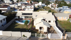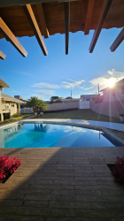 A residência possui vaga para até 4 veículos. Possui também, uma piscina acompanhada de um quiosque com banheiro.