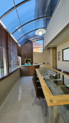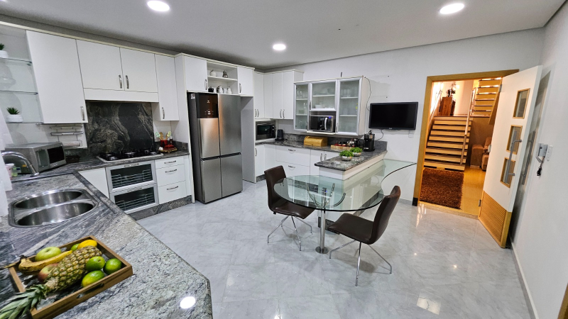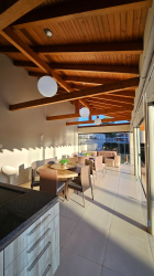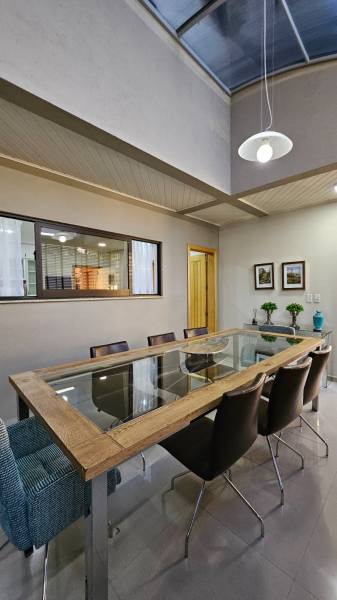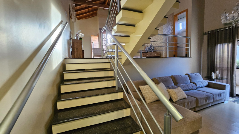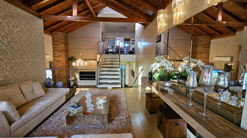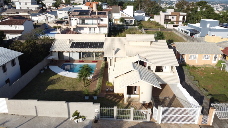 O teto do imóvel possui rebaixe de gesso com estrutura em madeira nobre. As esquadrias são de alumínio e o piso em porcelanato. Aquecimento solar e aquecimento a gás. Terreno todo murado e cercado.