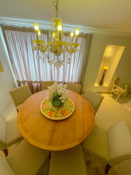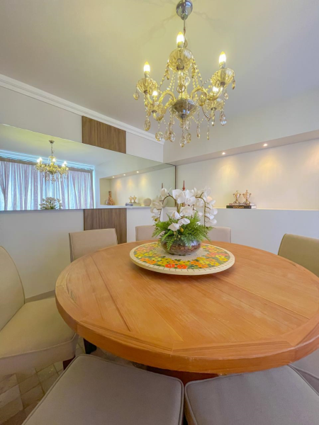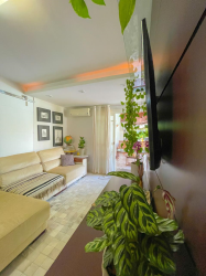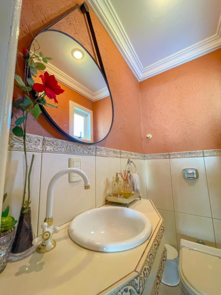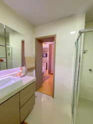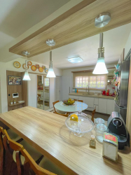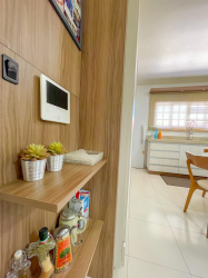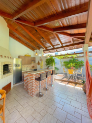 1 lavabo, cozinha integrada com copa e sala de TV, área de serviço e uma área gourmet com churrasqueira, pia e bancada. Contém um “deck” com teto em pergolado. Permanecem todos os móveis sob medida.