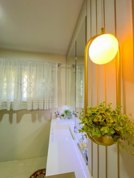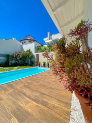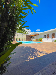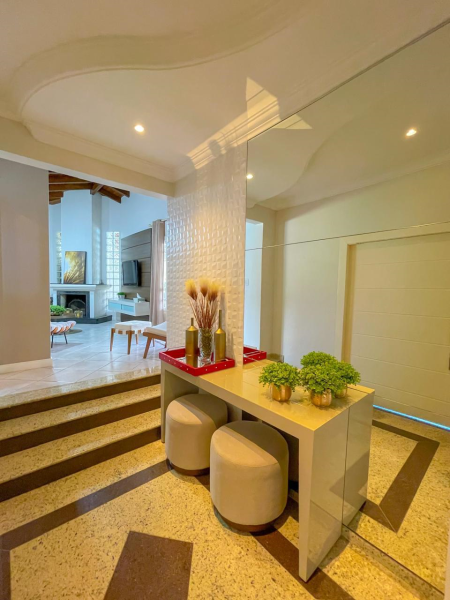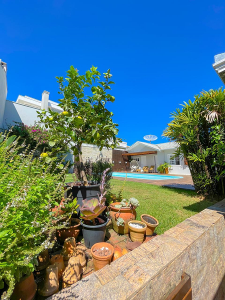 A residência possui vaga de garagem para até 5 veículos, com piso em “paver” e portão eletrônico. Possui também, uma ampla piscina com banheiro e um belo jardim com diversas plantas, árvores e orquídeas. Local totalmente ensolarado e plano.