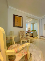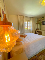 O teto do imóvel, em alguns ambientes, possui rebaixe e molduras em gesso, outros ambientes com estrutura em madeira nobre. As janelas em madeira com pantográficas. Porteiro eletrônico com câmera. Terreno todo murado e cercado.