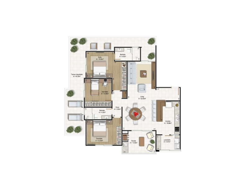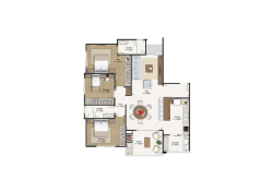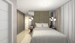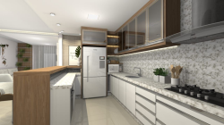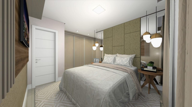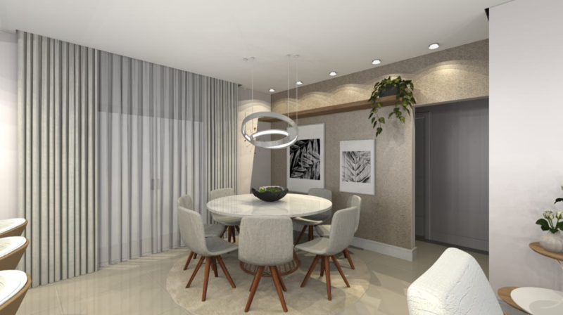 com uma suíte, dois quartos, living, cozinha integrada, área de serviço, ampla
