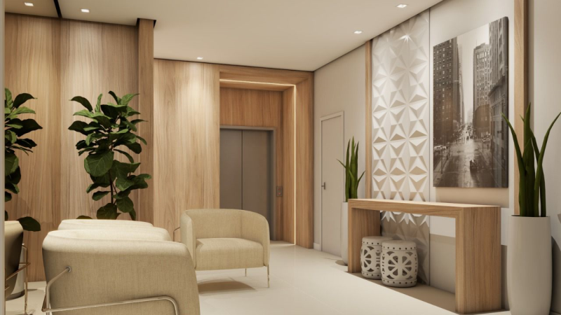 hall decorado, salão de festas, possui um acabamento de primeira qualidade, piso