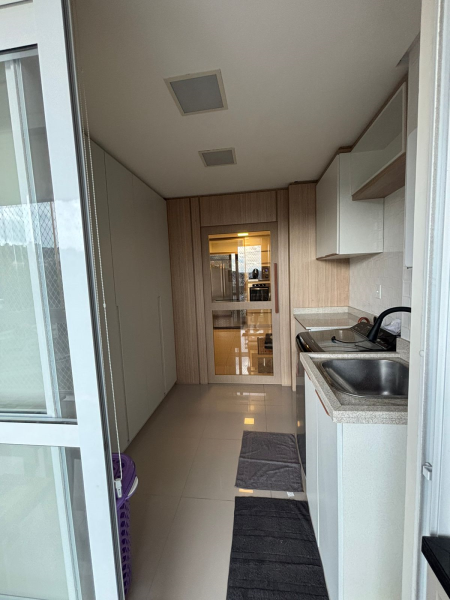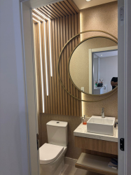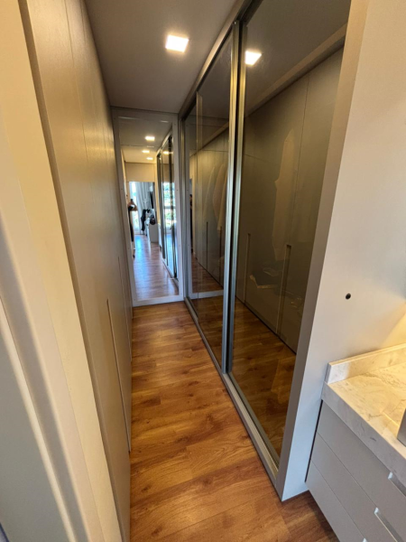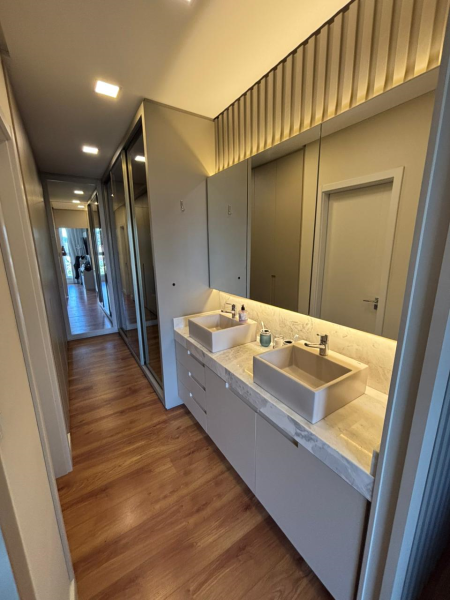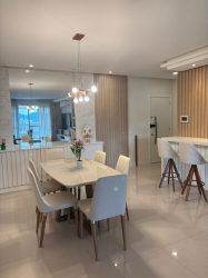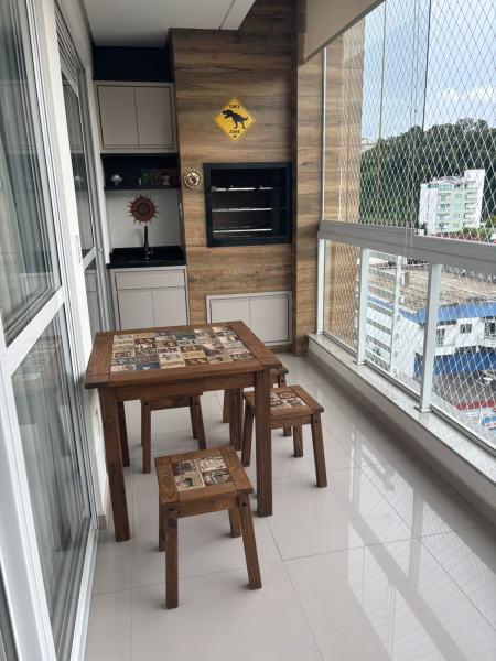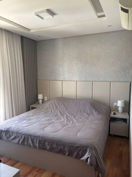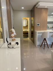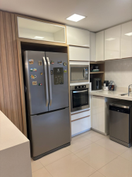 O imóvel possui acabamento em gesso, pisos em porcelanato e laminado, elevador, três suítes, lavabo, sala, banheiro social, cozinha com móveis sob medida, lavanderia, varanda gourmet com churrasqueira, duas vagas de garagem. Permanece no imóvel todos os móveis sob medida, os demais podem ser negociáveis.