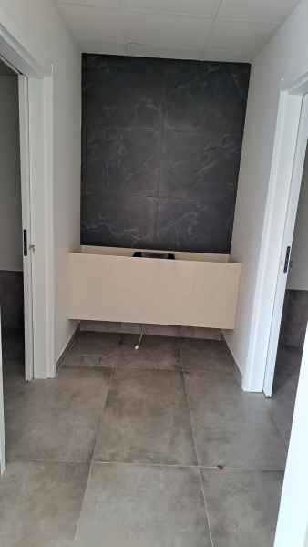 A sala possui em toda a sua frente vidros temperados, banheiro, área de serviço, cozinha, piso em porcelanato, luminárias e lâmpadas de emergência.