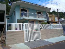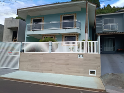 EXCELENTE CASA de dois pavimentos, toda com laje, teto com revestimento em gesso.Tendo no piso INFERIOR cozinha sob medida, sala de estar/jantar, sacada, banheiro e lavanderia. Churrasqueira completa, fogão mineiro, forno embutido.No piso SUPERIOR possui três quartos, sendo uma suíte com closet, sala de estar com sacada, banheiro, varanda. Água com aquecimento a gás, alarme.